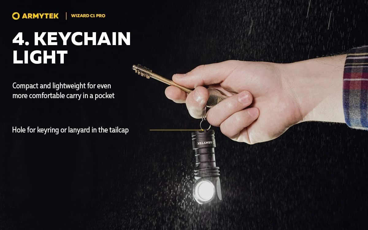 - Die Wizard C1 Pro ist eine kompakte und leichte Multifunktionslampe mit erweiterten professionellen Steuerung. Das Modell eignet sich für jede Umgebung, in der das Gewicht der Ausrüstung eine Rolle spielt: Profisport, lange Wanderungen, Angeln, Nutzung im Alltag, Verwendung als zusätzliche Lichtquelle auf der Jagd oder bei speziellen Tätigkeiten.