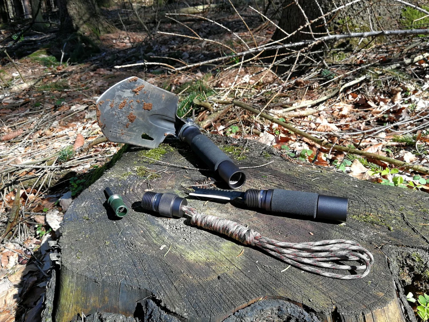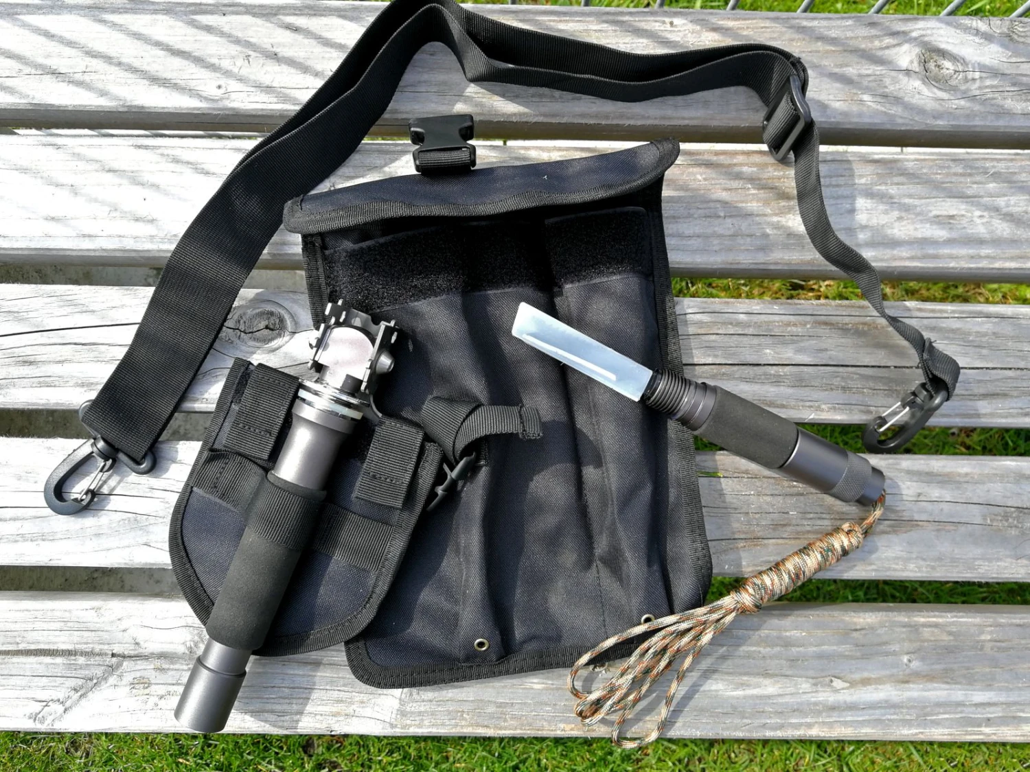 Hochwertige und leichte Klappschaufel für den harten Einsatz. Mit praktischer Canvas-Tasche für den Transport. Blatt aus gehärtetem Borstahl, Stiel und Griff aus gehärtetem Aluminium. Die 10 in 1 Survival Schaufel verfügt über 10, insgesamt 14 Funktionen: Paracord (ca. 3m Länge), Zündstahl, Notfallpfeife, Messer, Säge, Hackbeil, Axt, Hacke, Schaufel, Hammer, Drahtschneider, Messwerkzeug, Auto-Nothammer sowie einen Schraubenschlüssel. Einfachste Montage dank Gewinde mit geringem Spaltmaß.