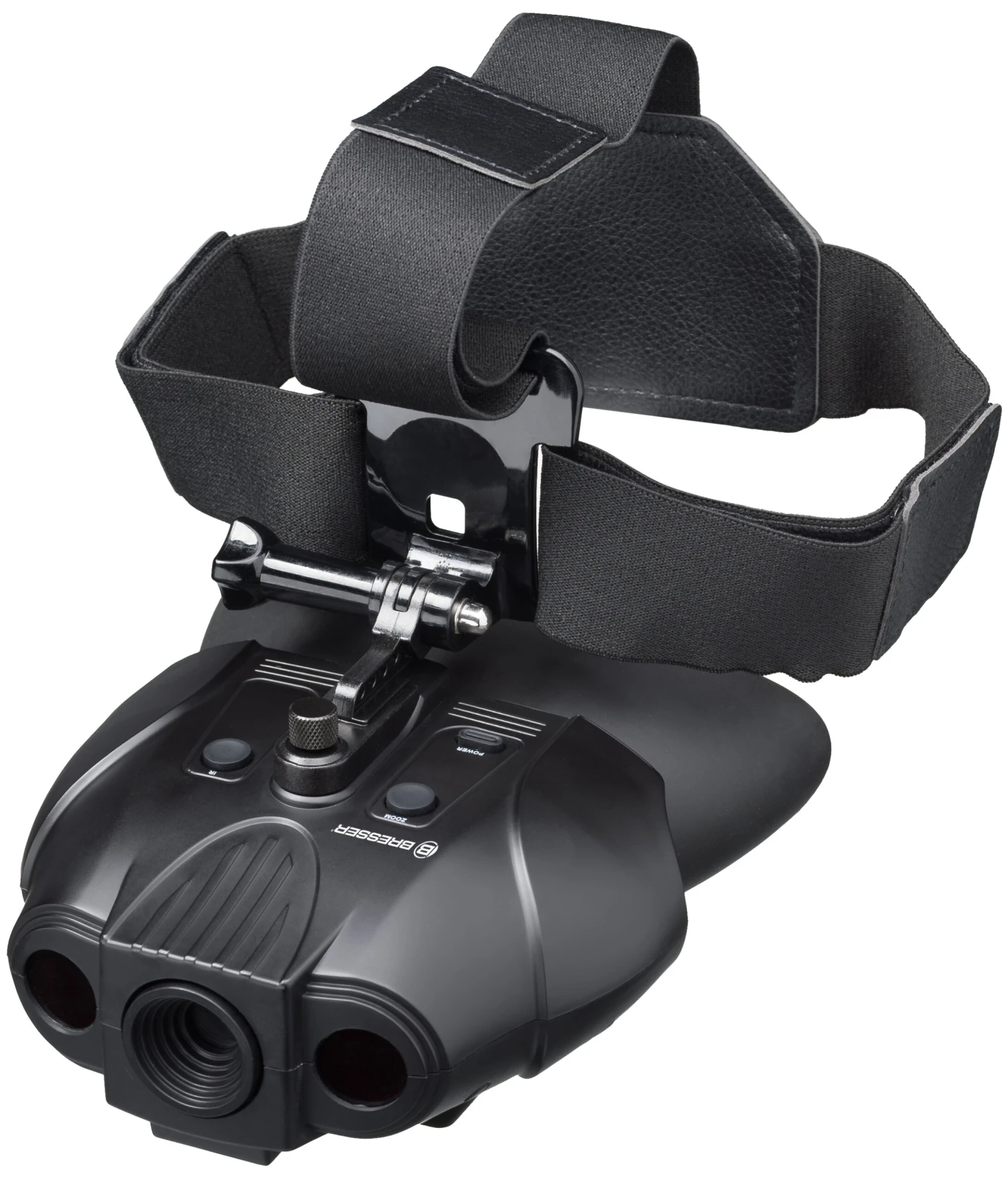 Das digitale Nachtsichtgerät ohne Vergrößerungsfaktor ist extra für die Fortbewegung mit diesem Gerät konzipiert. Dank der mitgelieferten Kopfhalterung können Sie sich ohne Probleme durch den Wald oder den Raum bewegen. Aber auch für das Beobachten von großen Flächen oder dem Garten ist dieses bestens geeignet, da es einen sehr großen Bereich auf einen Blick abdeckt. Durch die digitale Ausführung ist es unempfindlich gegen Überstrahlung. Der eingebaute Akku ermöglicht eine Beobachtungsdauer von ca. 8 Stunden. Aufladen können Sie diesen über das mitgelieferte USB Kabel oder eine optionale, handelsübliche Powerbank. Das gleichzeitige Beoachten und betreiben mit der Powerbank ist natürlich möglich. Die integrierte Infrarotbeleuchtung ermöglicht ohne Probleme ein Beobachten in völliger Dunkelheit. Durch den großen Einblick kann man auch mit etwas Abstand angenehm durch das Nachtsichtgerät beobachten. Durch den 2-fachen digitalen Zoom können Sie ihre Objekte näher betrachten ohne sich dem Objekt selber zu nähern. Die Erfassungsreichweite liegt bei ca. 70m. Beobachten können Sie bei diesem Gerät ganz komfortabel mit beiden Augen.