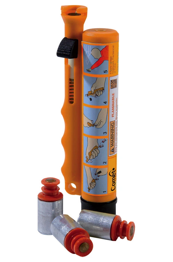 Signalgeber Compact: Eine kompaktere Version des Signalgebers „Personal“, bestehend einem Signalgeber mit integrierten Magazin zur Aufnahme von bis zu 3 roten Patronen. Diese sind an einem Gummiband befestigt, um sie vor versehentlichem Verlust zu schützen. Ansonsten wie Signalgeber Personal.
