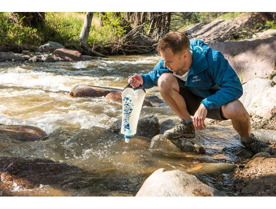 Für Trinkwasser im Camp bietet sich der BeFree 3.0L perfekt an. Mit einer Porengrösse von 0.1 Mikron (0.0001 mm) entfernt der Filter zuverlässig Bakterien, Zysten und Sedimente. Er ist ultraleicht, kompakt und bringt gerade einmal 100 Gramm auf die Waage. Der zusammenfaltbare Trinkbeutel benötigt kaum Platz.