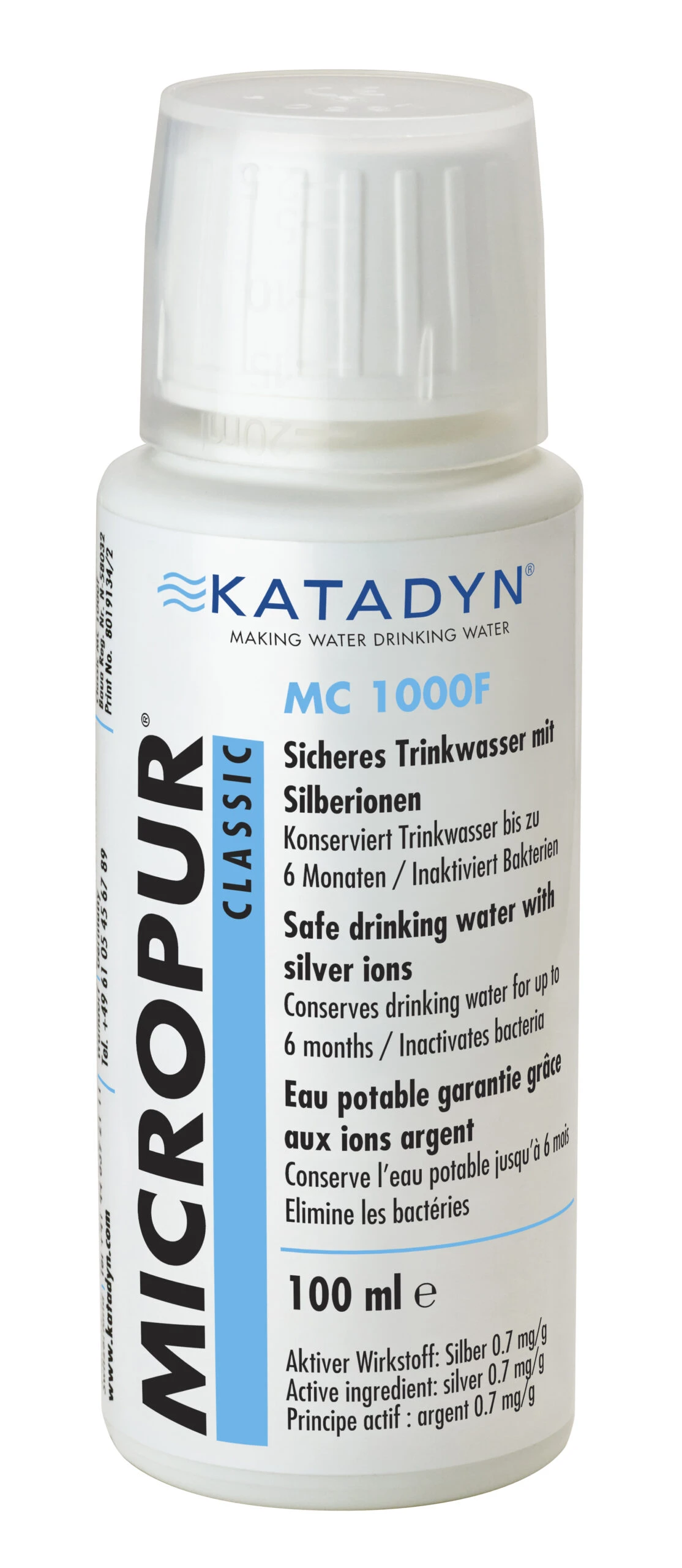 - 1 ml Flüssig-Micropur pro 10 Liter Wasser inaktiviert Bakterien und Keime durch Silberionen und konserviert Trinkwasser bis zu 6 Monate.