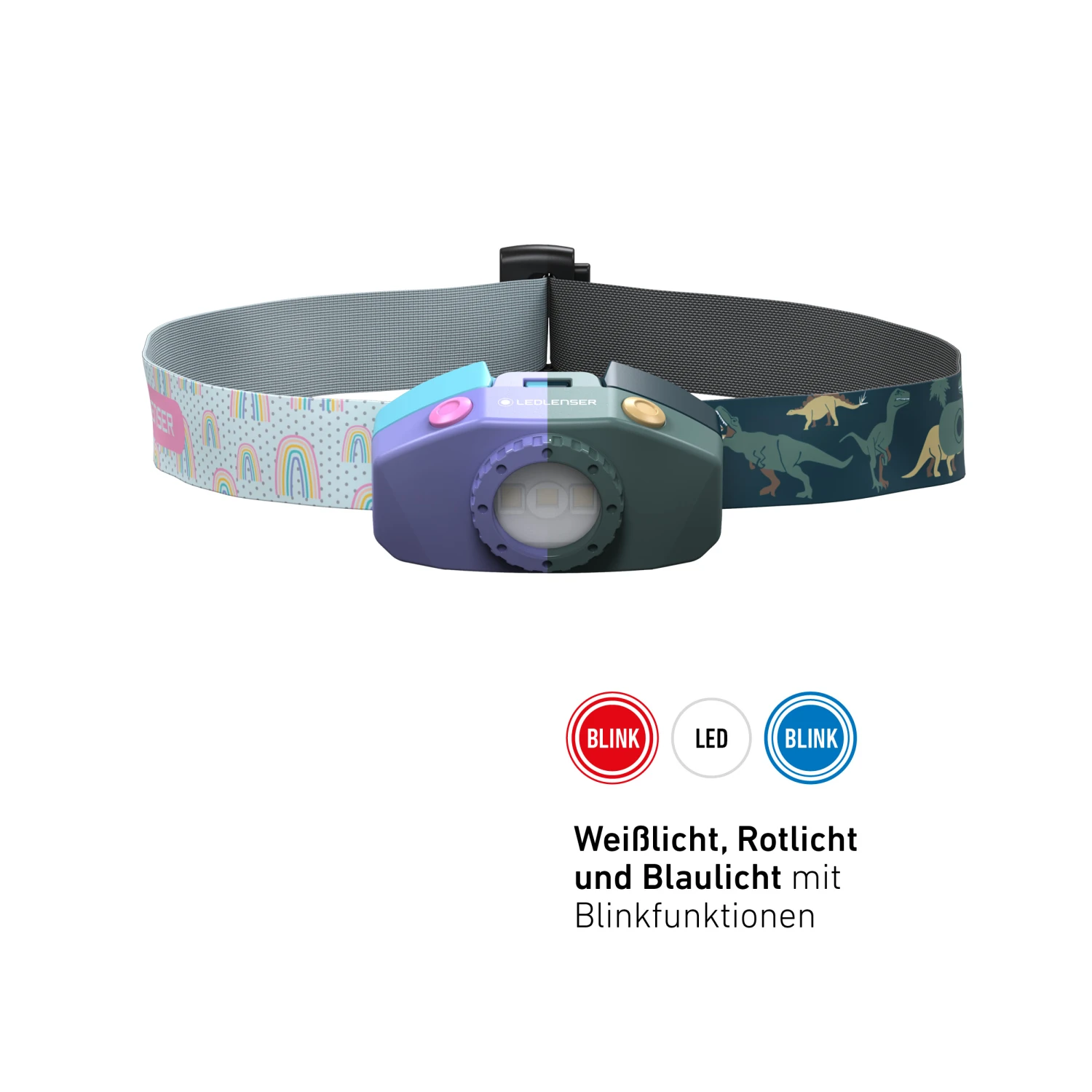 Praktisch: integrierter Metallclip für weitere Befestigungsmöglichkeiten ohne Stirnband (z.B. an Schulranzen, Rucksack, Kleidung)