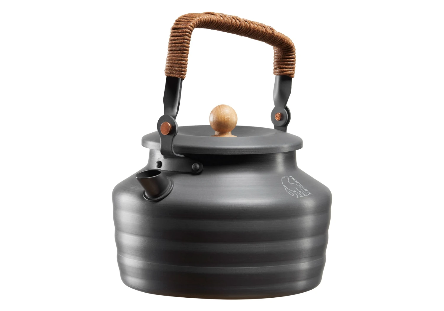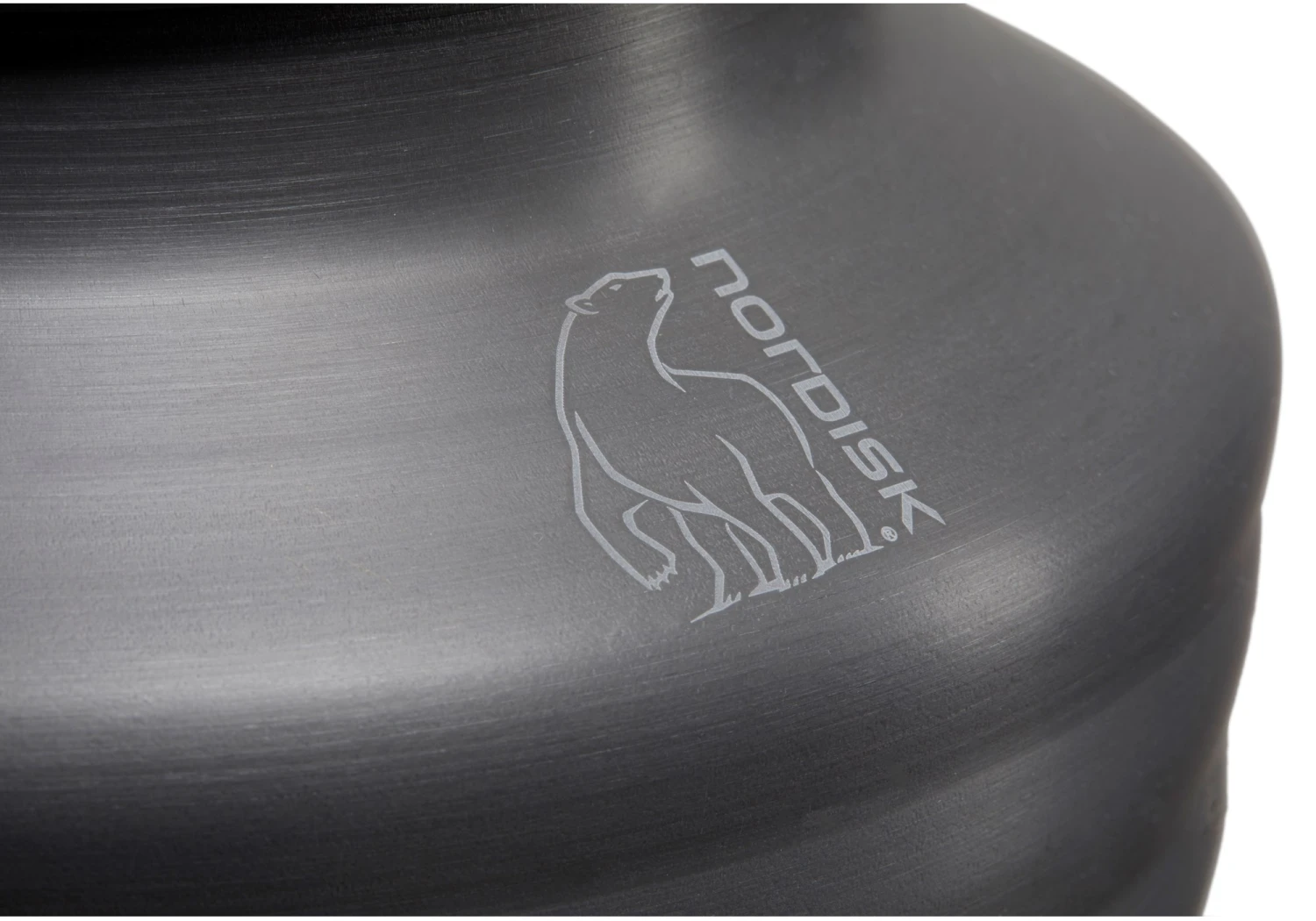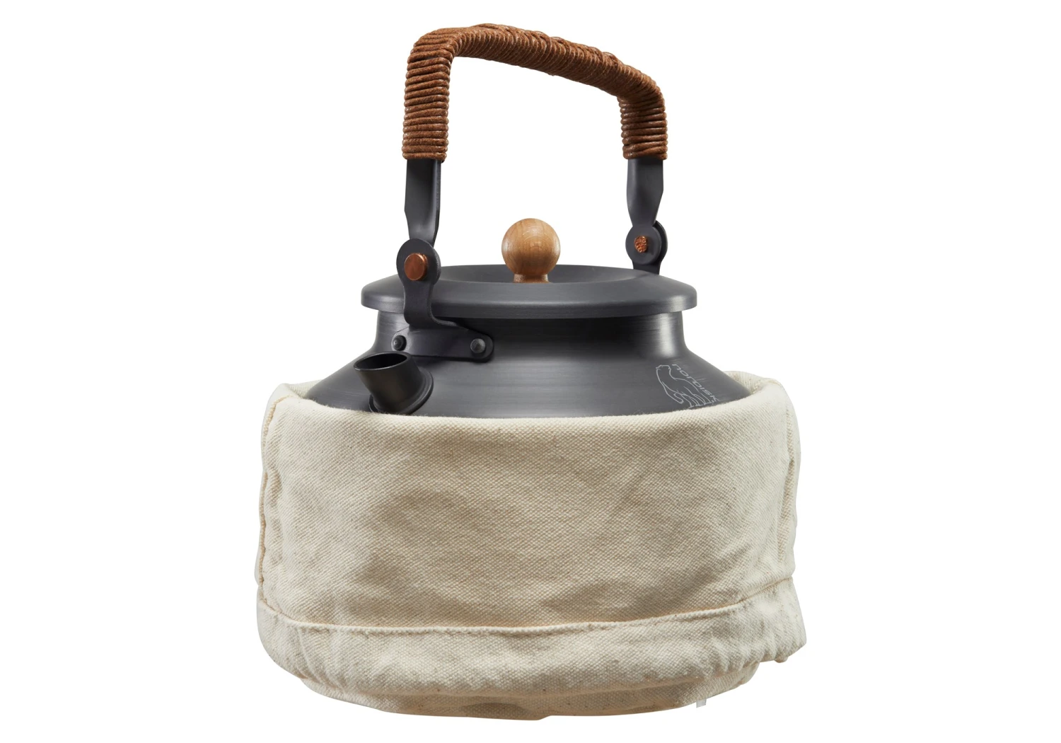 - Wenn man campen geht und am Morgen seinen ganz eigenen handgebrühten Kaffee oder eine schöne Tasse Tee am Abend trinken möchte, ist der Nordisk Kettle ein Must-Have. Im Retrostil eines im klassischen Lagerfeuer-Stil designten Geschirrs, aber aus extrem leichtem harten, eloxierten Aluminium gefertigt, vereint der Kessel das Beste aus zwei Welten. Der Kessel hat eine große Öffnung oben zum einfachen Befüllen und Reinigen und einem nicht tropfenden Ausguss. Er hat einen Deckel mit Holzknopf und einen mit einer Baumwollkordel umwickelten Griff zum Tragen oder Aufhängen. Die Aufbewahrungstasche kann für unterschiedliche Sachen genutzt werden.