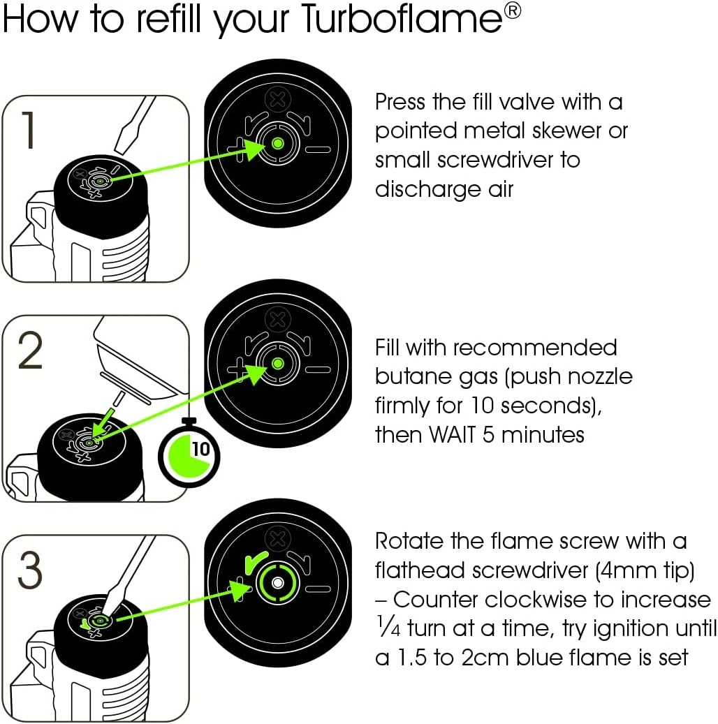 - Das Feuerzeug mit doppelter Präzisionsflamme von bis zu 1.300°C wird mit Butangas betrieben und ist absolut windfest.