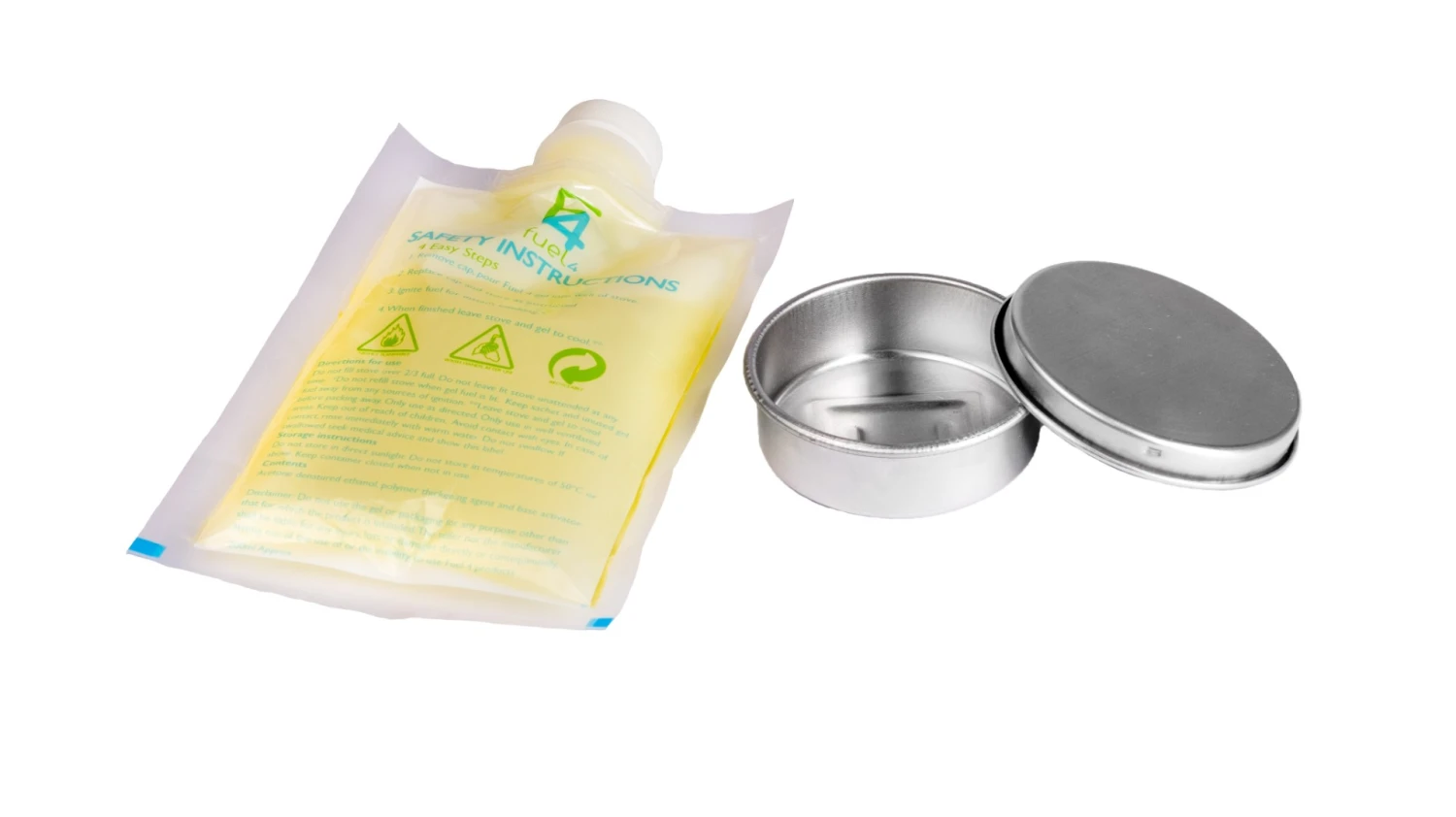 Gelbrenner. Besteht aus einem einfachen Becher und einem Deckel aus Aluminium. Kann mit Gel oder Festbrennstoff verwendet werden. Geeignet für diejenigen, die einfachere Kochanforderungen haben – wenn Sie beispielsweise nur Wasser kochen möchten – oder wenn Sie Gasbehälter oder flüssige Brennstoffe vermeiden möchten.