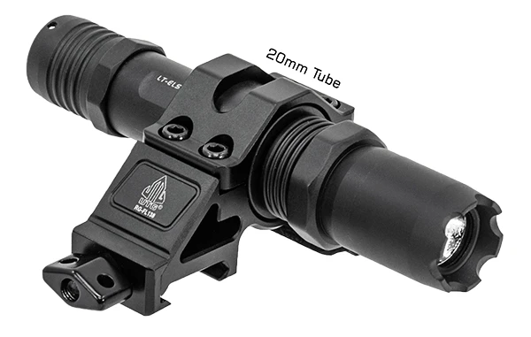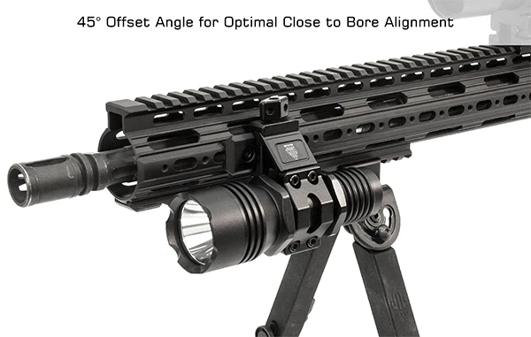 - Taktischer Taschenlampenring der neuen Generation von UTG mit 45-Grad-Versatzwinkel für eine optimale Ausrichtung der Mittelbohrung mit niedrigem Profil