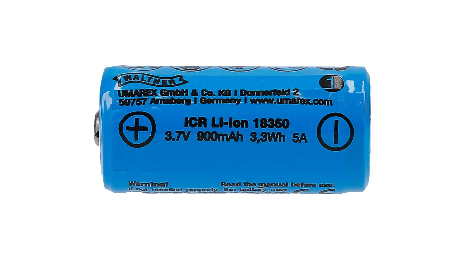 - Geschützter Li-Ion-Akku Typ 18350 mit 900 mAh Kapazität.