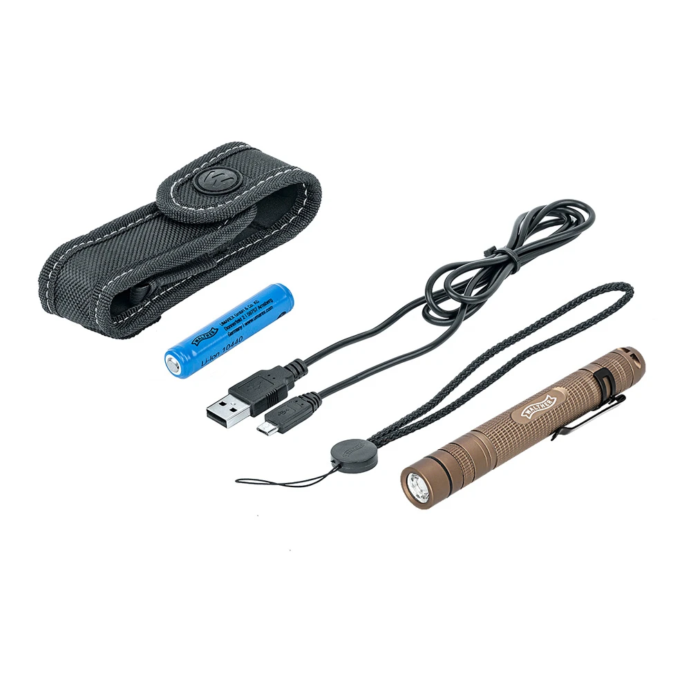 - Den mitgelieferten Li-Ionen-Akku (Typ 10430) lädst du direkt in der Lampe per USB; durch einen Tiefentladungsschutz ist der Akku geschützt.
